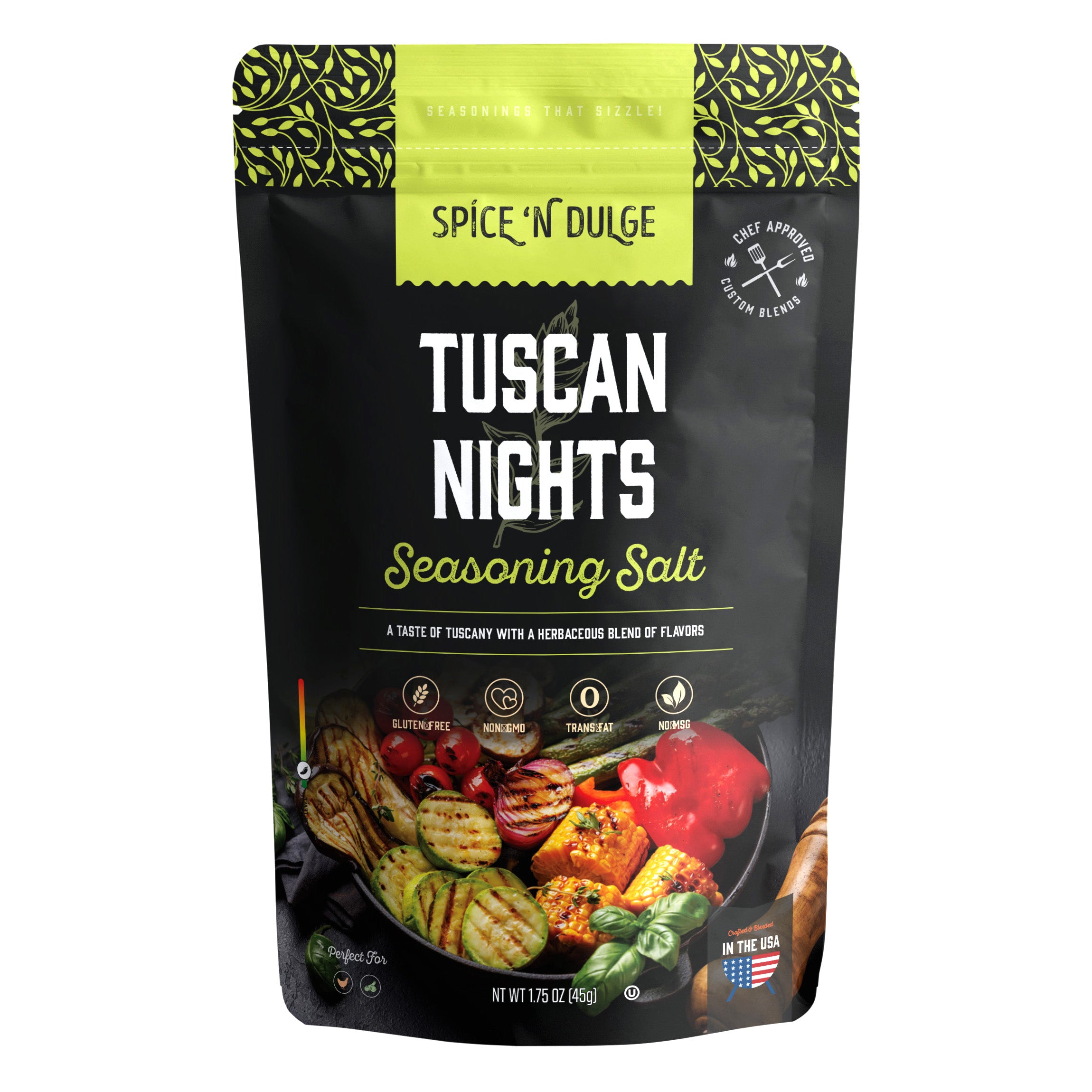 Herbaceous Mediterranean flavor inspired by rustic Italian cooking. Tuscan Nights adds savory herb depth and freshness to everyday meals.